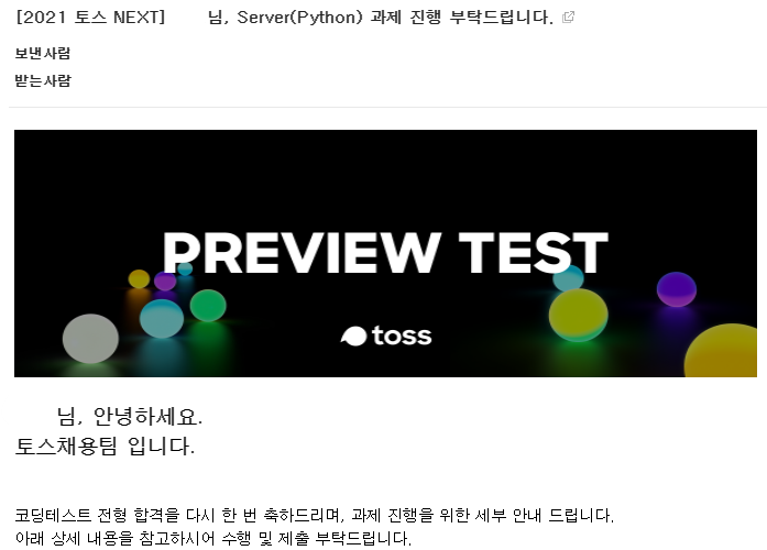 과제 전형 시작 시간에 다음과 같은 메일이 왔다.