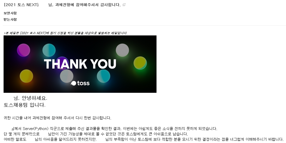 2021 TOSS NEXT Server(Python) 과제 전형 후기