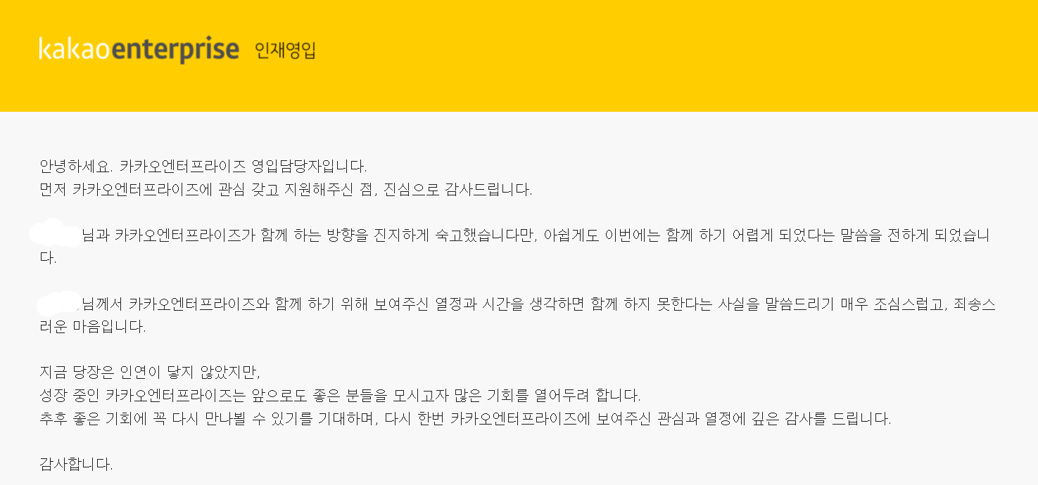 프로그래머스에서 진행한 데브매칭을 올솔로 통과한 이후, 지원했던 카카오 엔터프라이즈에서 이메일이 왔다.