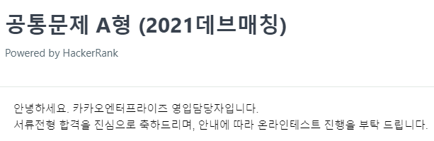 여러 후기들을 보면 알 수 있듯이 카카오 엔터프라이즈는 HackerRank로 코딩테스트를 진행한다.