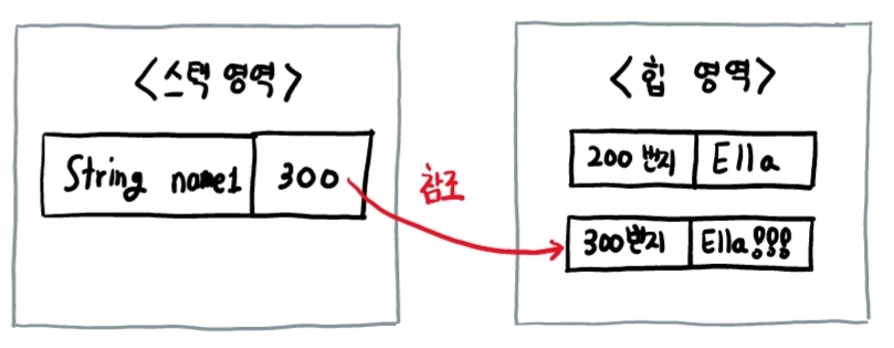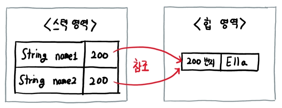 - 변수가 스택 영역에 생성되고 객체는 힙 영역에 생긴다.