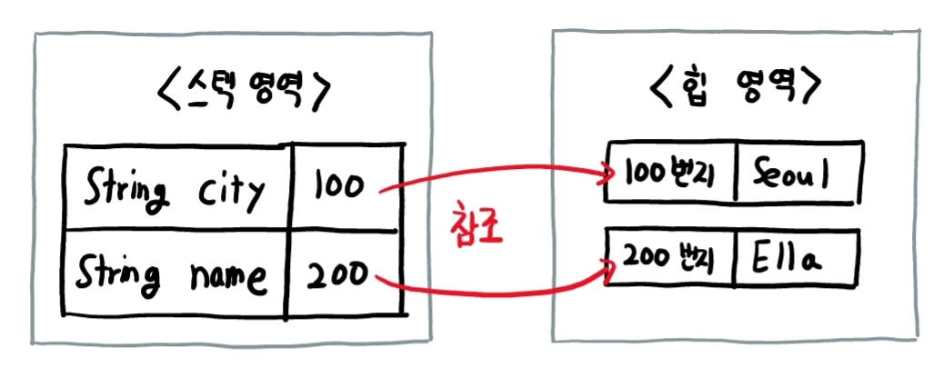 - 변수가 스택 영역에 생성되고 객체는 힙 영역에 생긴다.