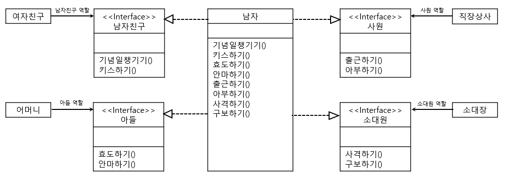 => 다음과 같이 인터페이스로 역할에 따라 인터페이스로 나누는 것